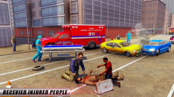 3.作为救护车司机,逼真的驾驶内容和游戏场景,让您应对突发事件,快速抢救伤员。