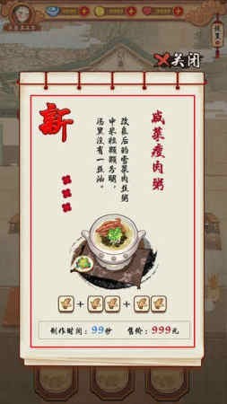 一款古色古香的休闲模拟类小游戏带给各位玩家,在大中华食堂2这个游戏当中,想要获得一些食材或者是道具的话,就必须要用金币购买,所以金币的出现是很重要的,为了能够制作出更加可口的美食,你还需要更加努力才可以。