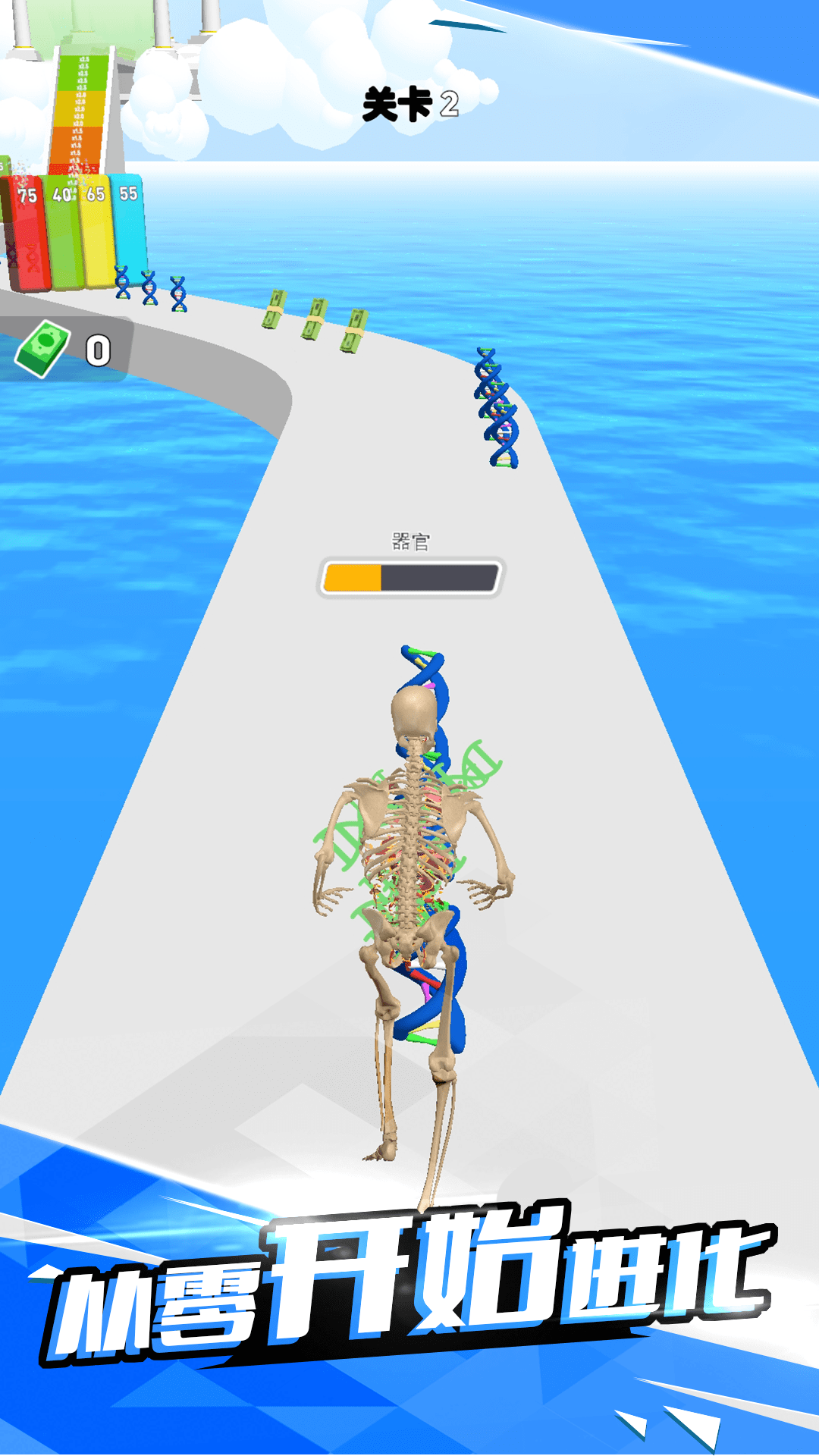 2.在酷跑的过程中,要想将自己不断的得到进化,你需要尽可能多搜集基因。