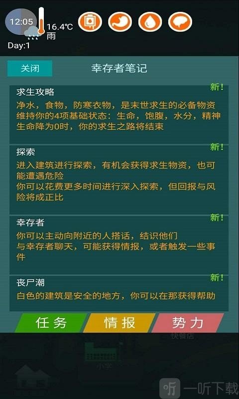 广阔的废墟是你的战场,到不同的场景去寻找资料,尽量获得更多的资源,这样可以帮助你提高生存能力;