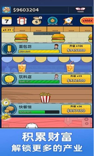 爆笑小乐园是一款需要玩家依靠策略能力不断成长的游戏,投资更多的行业并且在这里成为商业大佬,收购更多的公司,创意无限的玩法会使玩家喜欢,还会在每一次的通关之后为玩家带来很多的奖励和惊喜,用来解锁更多的建筑物。