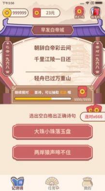 要更加认真的去对待这个游戏,因为他考验你的诗词掌握水平,无论是小学的,初中的,高中的,甚至于大学里学到的各种诗词都能够从这里被考验,让你能够知道唐诗宋词元没有你想的那么简单,你还能从这款游戏当中获取大量的金币,当金币积攒到一定数量时,可以兑换一个意外的惊喜。
