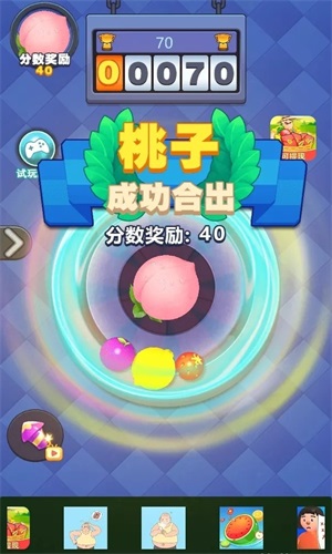 2.需要以同样的速度快速合成消灭两个果实,完成挑战获得奖励。