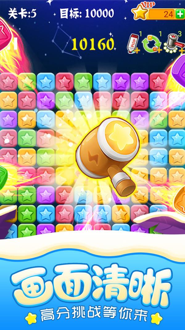 1.消除任务非常的简单,只需要点击相邻相同颜色的星星就可以完成消除。