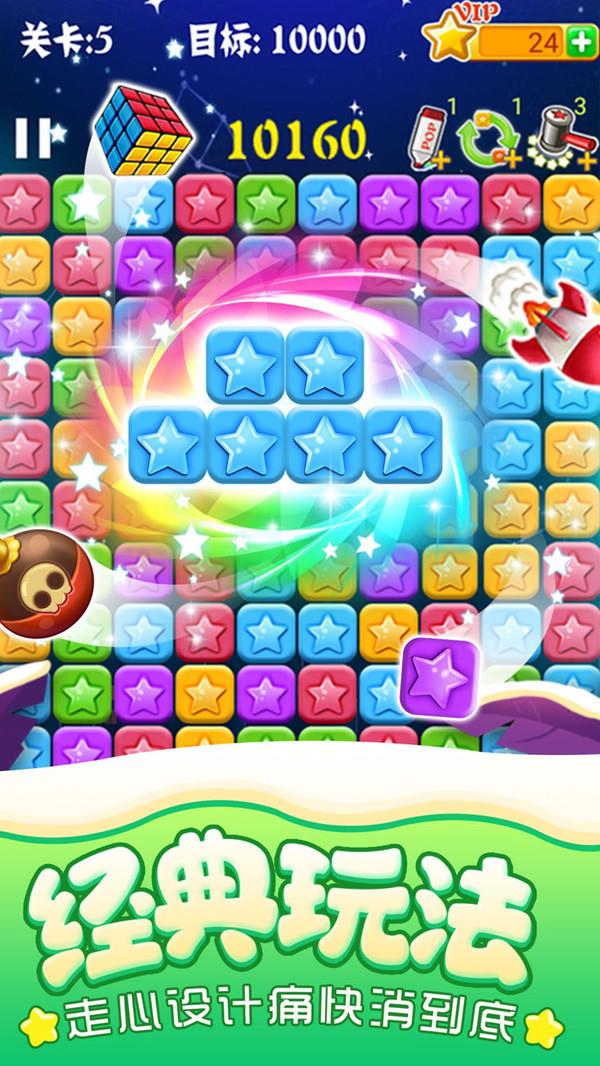 消灭星星经典的游戏操作玩法上面特别的自由,整个游戏的画面也都特别的唯美,玩家通过不断的完成消除任务,会感受到游戏带来的无穷无尽的乐趣,游戏的任务不会有太大的难度,广大玩家都可以轻松上手,是每个人休闲时候的一个不错选择。
