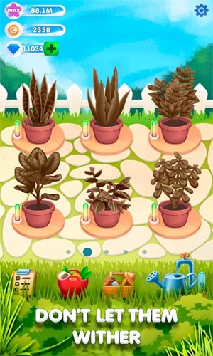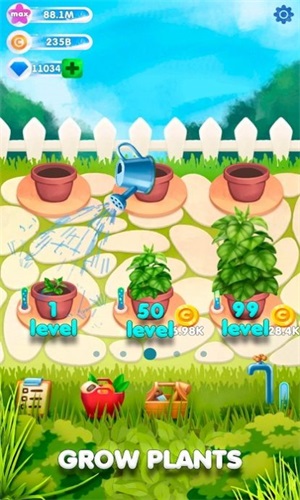 1.玩家需要在现有的土地中种植自己喜欢的绿植,相同绿植在成长的过程中可以进行合并;