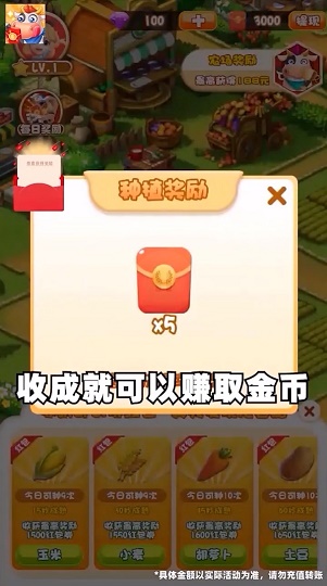 2.农作物成熟之后就可以为自己带来一定的收益与奖励,扩大农场规模。