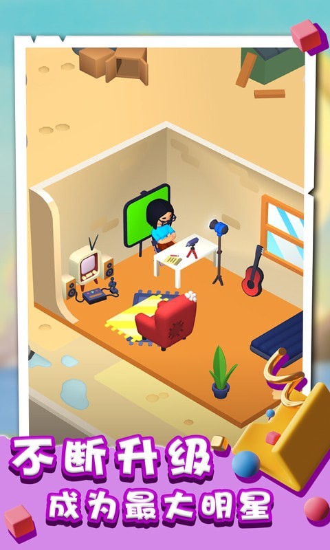 这是一款玩法多样的网红模拟小游戏,自由的解锁角色,不断的升级,收获更多的粉丝,完成更多有趣的挑战,难度不大,并且玩法自由,随时随地加入直播间,自由互动,感受不一样的挑战乐趣!
