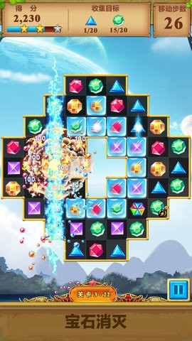 宝石消灭这款玩法十分经典的消消乐小游戏,画面设计非常的精美,五颜六色的宝石组合的游戏画面,非常的华丽,让玩家拥有全新的视觉体验,经典的三消原则,每个玩家都可以轻松的上手挑战,各种道具自由解锁使用,释放的消除技能非常的华丽,还有欢乐的游戏音效,让大家拥有最佳的视听盛宴!
