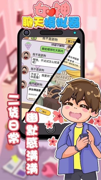 女神聊天模拟器是一款为玩家模拟了与女神对话情境的游戏,画面采用了卡通风格打造,并且聊天框的造型是非常写实的,与女神进行对话聊天并且获得她的芳心,精彩的故事内容可以让玩家自由的感受,每次的对话都是非常重要的。