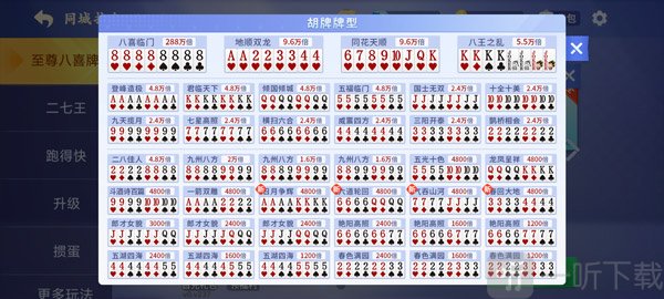 1、胡牌时所有牌是同花色时,胡牌分数x8(不可叠加同颜色)