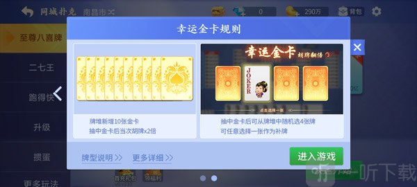 牌数:2副牌额外加6张大小王+4张8+10张金卡,共128张
