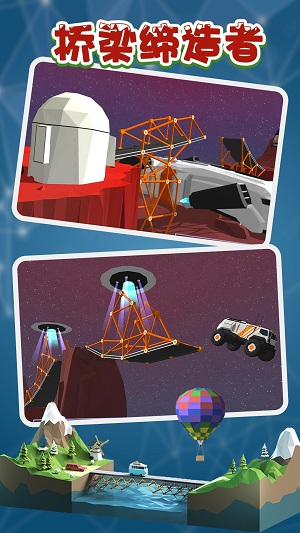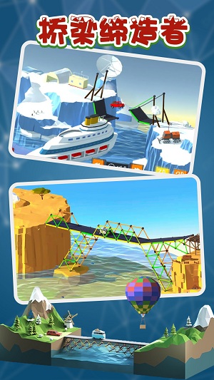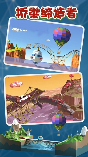 桥梁缔造者是一款模拟桥梁建造的休闲游戏。游戏场景的建模十分贴近现实,又采用卡通的画风,游戏拥有不同的场景设置和任务挑战,特别考验玩家的空间立体感和物理数学等知识储备,还能使玩家在游戏过程中了解到一些桥梁建筑的相关知识。
