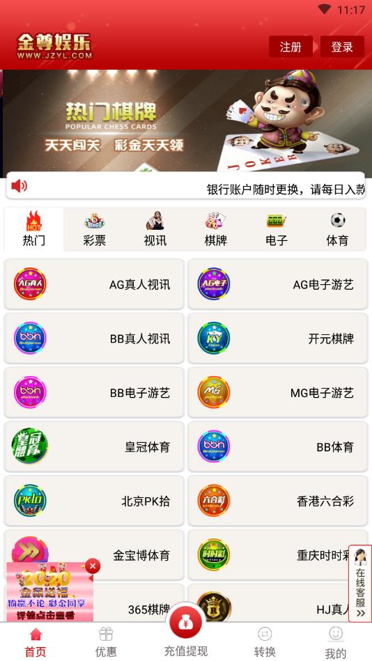 金尊棋牌迷人的娱乐棋牌世界,海量丰富多彩的棋牌内容,让玩家享受刺激的游戏乐趣。实时挑战模式,让你随时与高手较量,享受原汁原味的棋牌娱乐体验。游戏涵盖了多种热门棋牌游戏,无论是经典斗地主、麻将,还是新奇捕鱼、炸金花,界面精美,操作简单,保证给您带来极致的游戏体验。快来下载体验多彩的棋牌乐趣吧。