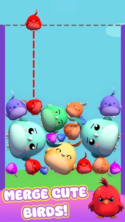 1.独特的合并玩法,通过将小鸟放置在篮中进行合并,获得更高的得分。