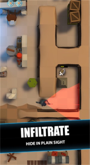 独特的上帝视角纵观全局,敌人有可发现的锥形视角范围,大大提升了我们的隐匿程度。非常多的枪支和子弹特效。关卡设计的都很有意思,还有很强的怪物,这就需要你合理的使用地图卡位来击杀他们。
