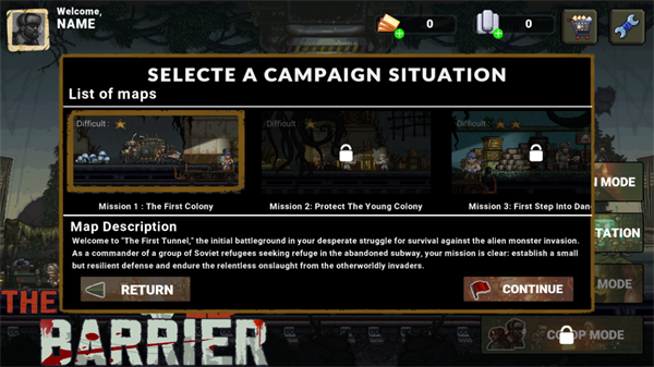 1、在本站一听下载并安装最后的障碍手机版,然后进入游戏,点击“CAMPAIGN MODE”开启游戏;