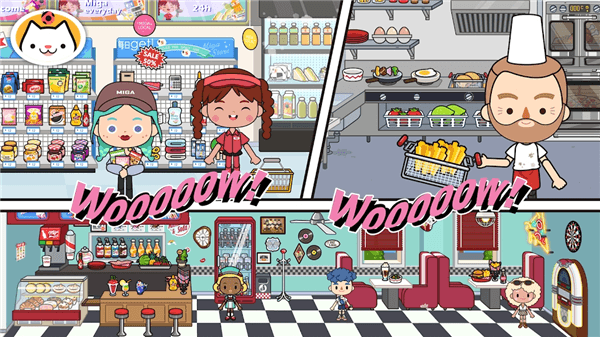 2. 小镇上有许多建筑都是能拜访的,例如宠物店、咖啡厅、游乐场、街机厅等等。