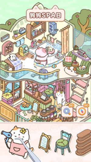 2.视听风格柔和明快,物件造型圆润可爱,交互反馈细腻,配合猫咪的陪伴动作与音效,共同构建温暖放松的体验氛围。