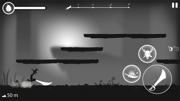 3. 点击屏幕任意位置可以进行跳跃,再次点击会进行二段跳,而屏幕右边则是攻击键和技能键