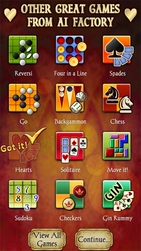 红心大战是一款收录了众多卡牌与棋子小游戏的益智休闲类安卓手机游戏,让玩家可以自由挑战感兴趣的小游戏来消磨闲暇时间。玩家在游戏中根据红心大战规则出牌,目标是尽可能打掉手中牌并在获得100分时结束游戏,既适合打发闲暇时间,也能促进好友间的互动与竞技乐趣。