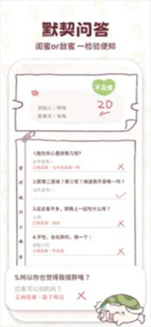 虽然是简单的小游戏,却将养成、互动与社交等元素进行了深度融合,通过共同养宠、趣味小游戏与专属聊天空间让好友间的互动更具仪式感与温馨感,多种任务与纪念功能让回忆更易保存与回顾,快叫上你的闺蜜一起下载体验吧!