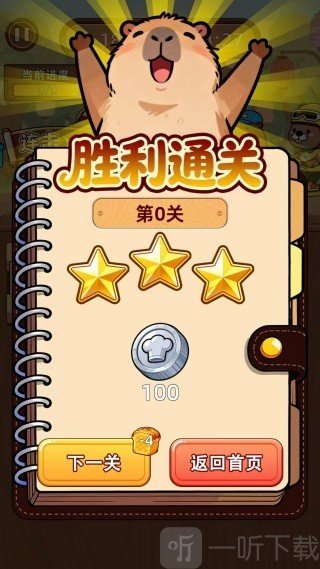 3.完成初关卡任务,获得顾客好评,就可以授予三颗星的奖励,并获得100个银币,然后就点击下一关。