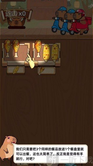 1.登录进入游戏,如图所示,玩家需要把盘子里的鸡腿移到左边的盘子里,就可以进行消除出餐了。