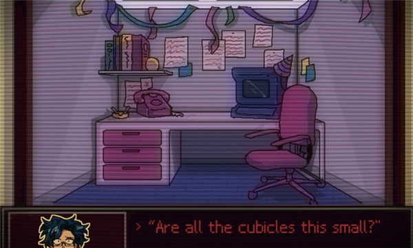 1、整体美术以2.5D视角呈现,结合复古色调与诡异构图,将70年代办公室的“正常感”与潜藏的不安巧妙融合。