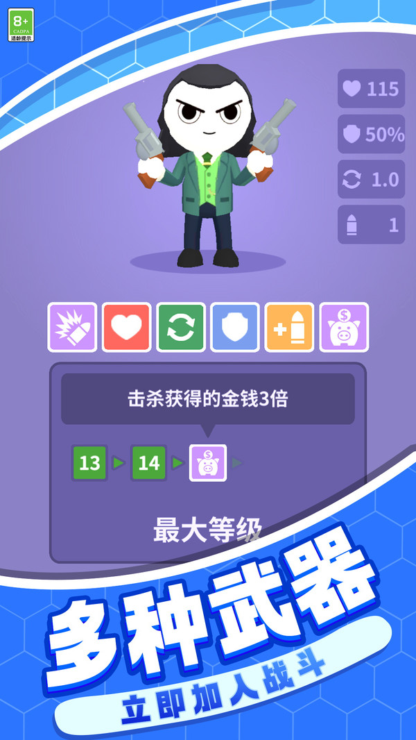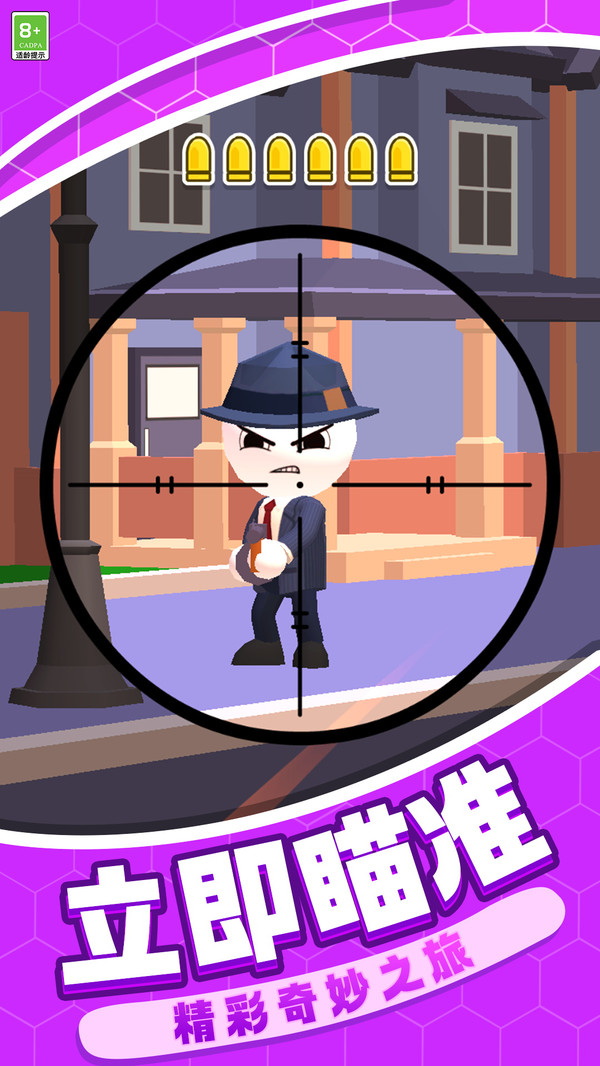 1.游戏没有复杂的操作系统,所有设计都围绕“瞄准—射击—击杀”展开,非常纯粹,让玩家快速进入爽点。