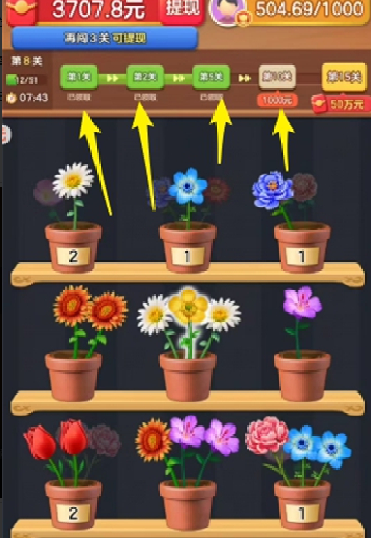 3.操作起来比较简单轻松,只需要玩家把三朵完全一样的鲜花放在一个花瓶里就可以进行消除。