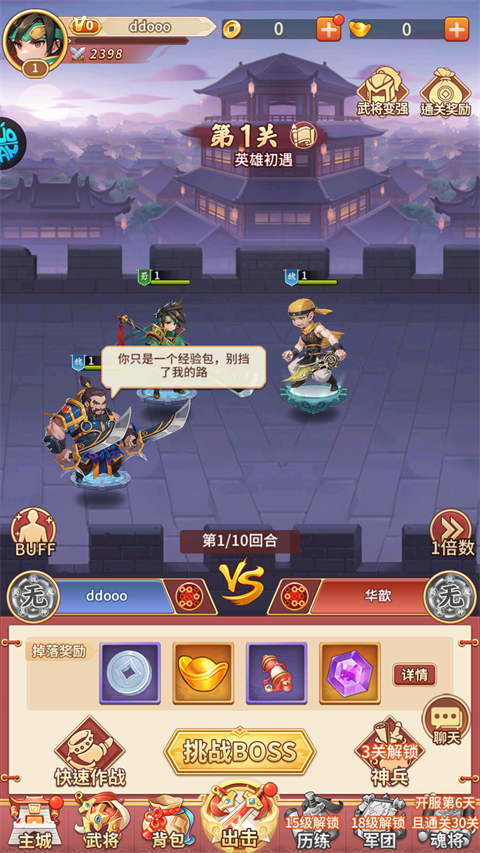 2、有了角色后就可以前往关卡挑战。
