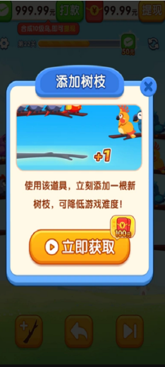 3、通过看广告解锁更多的树枝,可以让你操作更加的方便