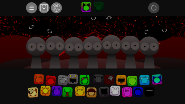 1.进入游戏之后,屏幕下方会显示一排代表着不同音效的图标,玩家需要将这些音效图标拖拽到屏幕中央的角色身上,这样角色就可以循环的播放这一音效,通过将不同的角色和音效组合到一起,就可以编制出独特的曲目。