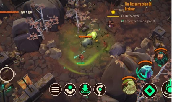 4.这时候就可以操控游戏的摇杆,释放技能来与敌人进行作战。