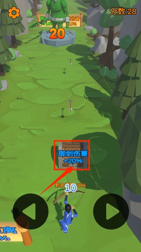 玩家在游戏内可以根据自己的目标对敌人进行锁定,当我们松开手指之后,这个弓箭将会成功的发射出去。如果玩家想要看清楚自己的动作,那么就可以开启慢动作机制,成功将敌人击败之后就可以见识他掉落的宝箱。