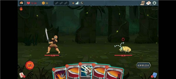 2)出牌选择的防御有5点护盾,可以完全抵消这个小怪的攻击伤害;