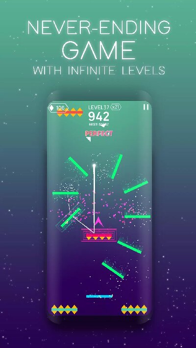 2.设置了无尽的挑战模式,让你可以没有任何顾虑,畅快的进行闯关,每一个关卡都可以收听不同的音乐,享受不同的乐趣。