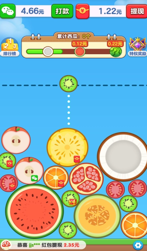 3、当我们成功将西瓜合成之后,就可以获得更多的现金红包。