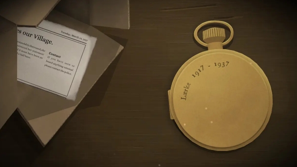 2.向下滑动屏幕就会出现半份报纸和一块怀表,玩家一通过图片可以知道时间是10:30,玩家二则会得到一个一个半小时之后的信息。