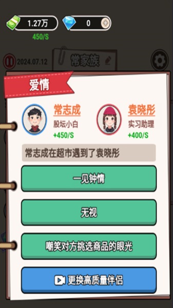 2、婚姻可以看玩家自己的需求选择,同样的看广告可以解锁更高级浪漫的婚姻。