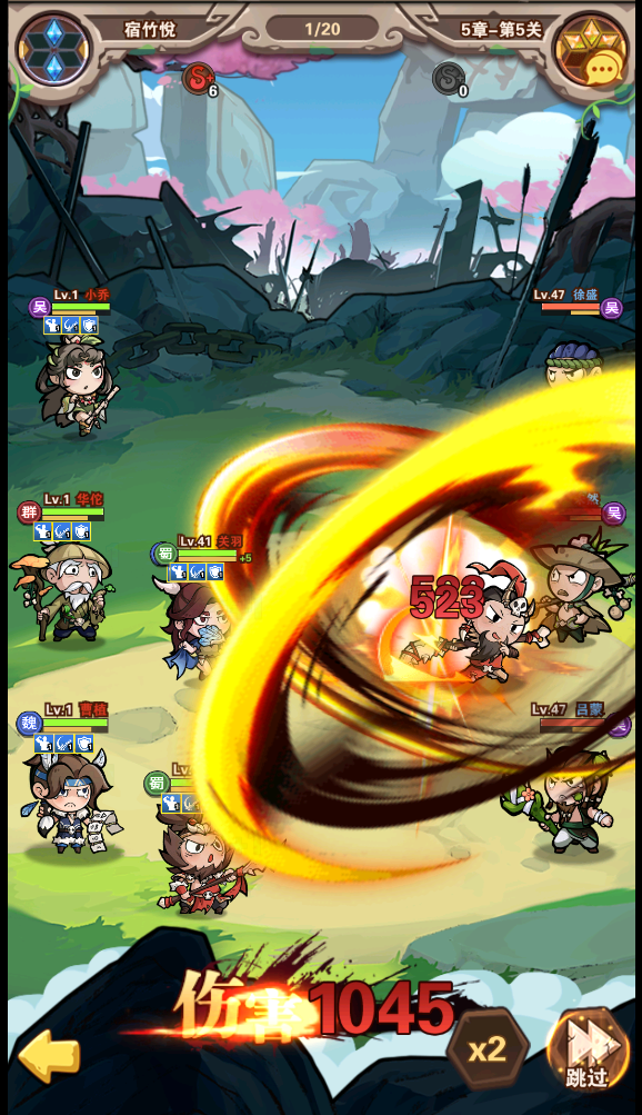 1.采用了q萌可爱的画风进行设计,为玩家打造了很多三国时期的经典英雄角色,你可以自由的去解锁,利用这些角色去完成不同的任务。