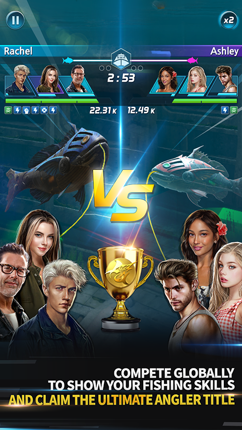 1. 探索全球钓场,挑战各式鱼种。根据淡水或海水环境、目标鱼的习性,灵活搭配你的钓具阵容。