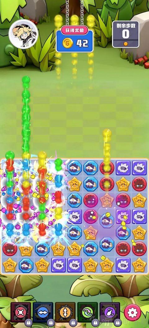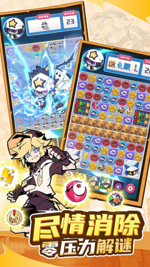 1、整体玩法基于正版授权内容进行还原,采用轻松的三消闯关模式,操作比较简单,上手没有太高门槛,同时加入角色技能支援,让消除过程不只是点点消消,节奏感也更明显一些。