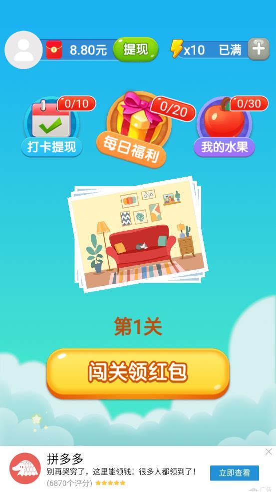 财神来找茬是一款非常考验用户们眼力的一款小游戏,通过两幅游戏画面来找出它们之间的不同,完成每一次的挑战,还可以收获超多的红包奖励。坚持每天登陆也会收获意想不到的奖励哦,喜欢玩找茬的朋友们,快来玩一玩吧。