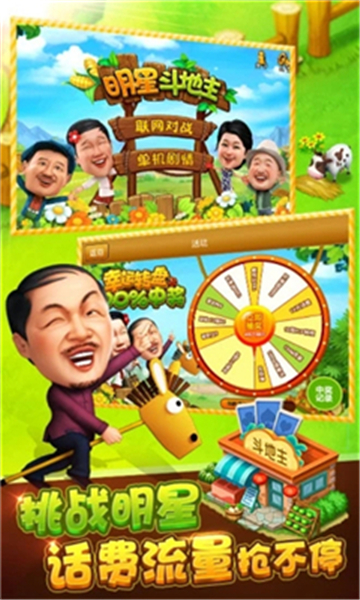 明星斗地主新版游戏,是全国出国了名的纸牌游戏,这款游戏内有多种模式,单人模式,三人模式,游戏内的角色形象都是采用乡村爱情里的经典角色,画风诙谐,更有地地道道的东北口音搞笑十足,里面有海量的道具炫酷的玩法让你嗨翻天哦!