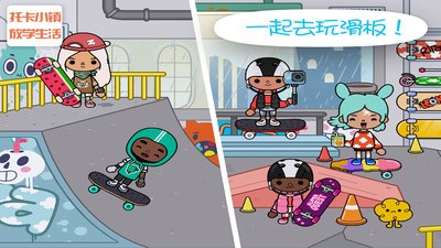 托卡小镇放学生活是一款非常轻松休闲的趣味小游戏,在这个游戏中玩家可以再感受到更多可爱的卡通的一面,简单清新的游戏画面和可爱的人物造型,都给玩家带来了非常放松的视觉效果,玩家可以在游戏中去自由地使用自己的时间,利用各种各样的滑板去不断地探索,找到各种你喜欢的娱乐方法,还有非常优美的背景音乐可以让你得到充分的放松。