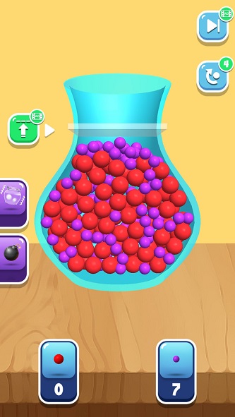 大球小球是一款非常轻松休闲的趣味小游戏,在这个游戏中有各种各样的游戏关卡,需要玩家去不断地挑战,在每一个关卡里都有非常多的球球,需要玩家对他们进行不同的顺序的操作,让他们可以非常完美的放到一个瓶子里面,但是前提是不能让球球溢出瓶子,不然你就会面临失败。