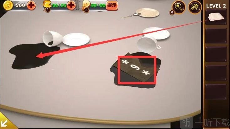 3、点击桌上的咖啡,弹出数字提示为“9”,使用抹布清洁桌面左侧倒出的咖啡,得到数字提示“2”。