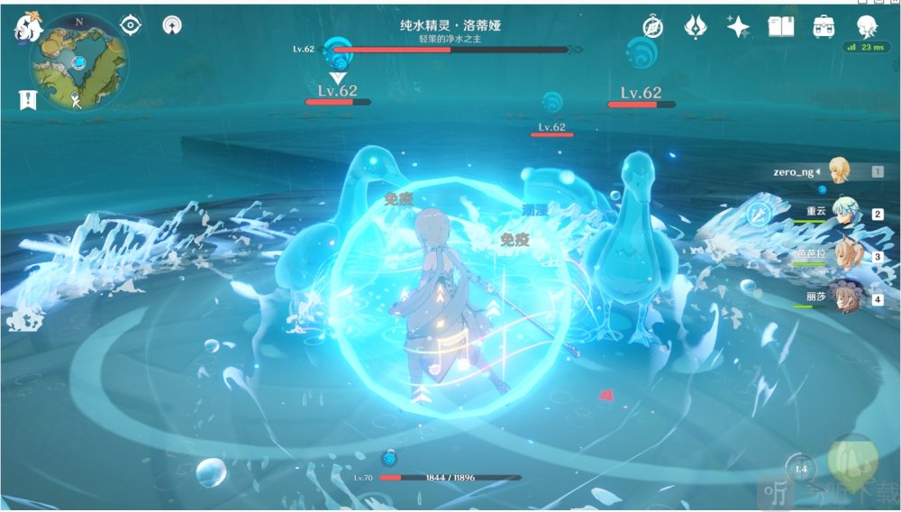 纯水精灵四个阶段:一阶段召唤一组,二三四阶段都是两组,每组随机配置,单阶段有隐藏时间,超过之后脚底会有高频高伤的水波,一般出了就角色死了,所以打纯水一定要快。